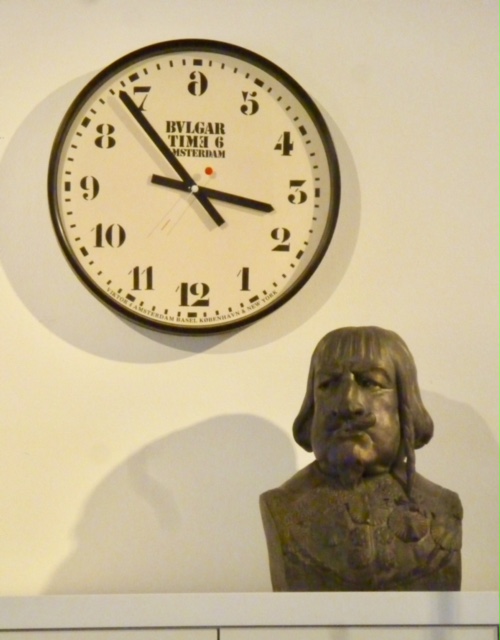 Dan noticed this clock. Look closely: it’s upside-down and backwards. I don’t know who the serious person is.