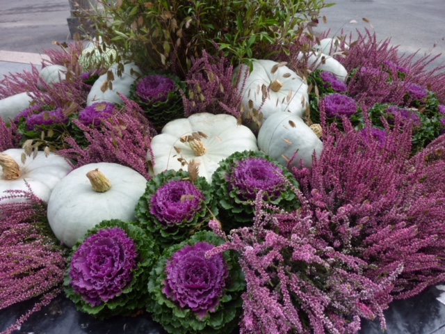 I saw a few colorful displays: kale, pumpkins, and amaranth. Not exactly vegetable gardens, as the pumpkins are clearly already harvested, but quite nice.