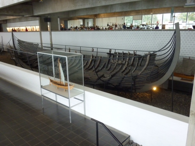 Here’s one of the ships in Rosskilde, with a little model of the complete thing in front of it: