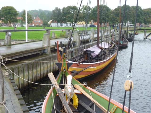 Today, one can see not only the reconstructed remains but also a replica ship, which has been sailed from Denmark to Ireland (among other voyages). It’s the yellow and orange boat here: