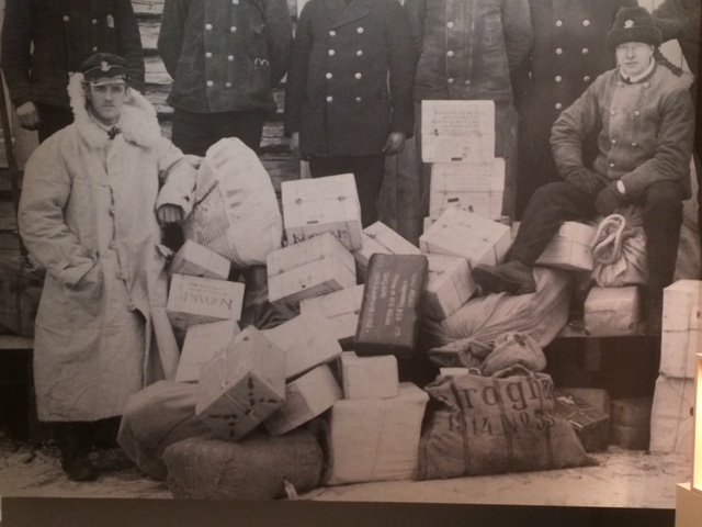 There was a whole room about the role played by the postal service in World War I, when mail — and prisoners of war — were transferred between nations through neutral Sweden. This exhibit focused on a town near the border of Finland, where the postal service carried some incredible load of letters, packages, and even people. This photo of a photo gives you some of the idea: