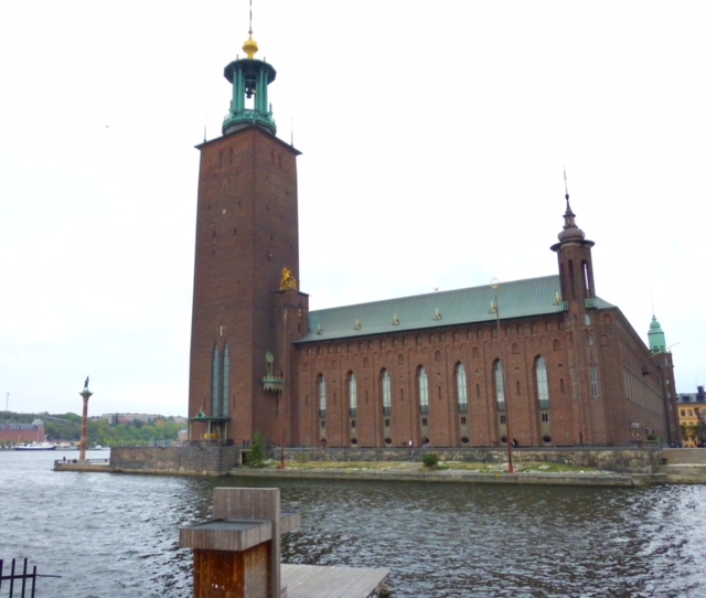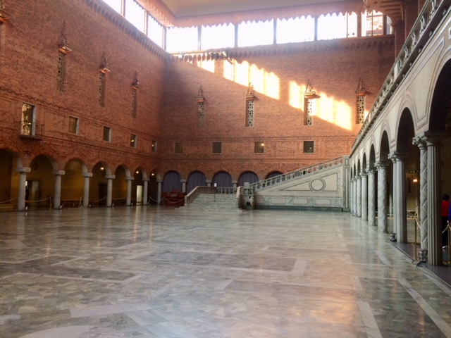 We begin with yet another impressive City Hall, this time including a tower climb. You may know that the Nobel prizes are awarded here (except for the Peace Prize, awarded in Oslo). The winners come across the balcony and down into this room