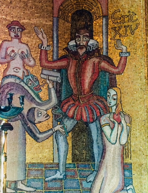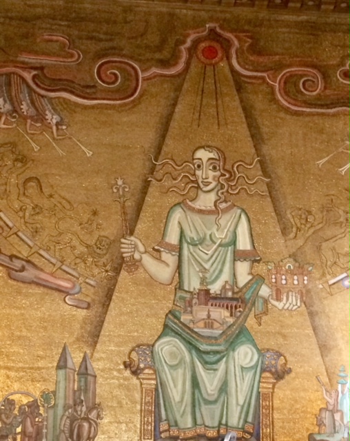 where 1700 people enjoy a banquet. Must be noisy, but I could live with that, given the event. The after-party is held in a similarly huge room whose walls are covered in gold and glass mosaics. This is Stockholm herself, reigning over it all: