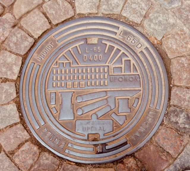And this next one is really just a path marker, not a manhole cover, at a museum in a small city where we visited friends. It’s in the pavement so I’m making it a member of the collection.