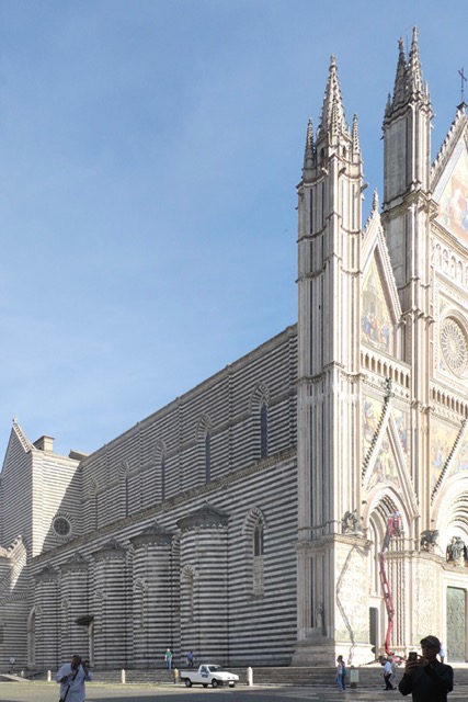 Orvieto is probably best known for its majestic cathedral, quite amazing for a small town in such a relatively inaccessible location. I think its facade is the tallest in Italy at 54 meters, and it was stunning in the sunlight:
