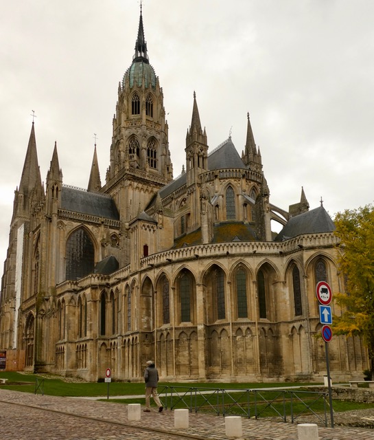 Also in Bayeux is a cathedral reportedly as big as Notre Dame in Paris. Perhaps because it’s right on the street, with no giant plaza around it, its size was hard for me to grasp. I’m not convinced that this photo gives the right feeling, but I’ll try: