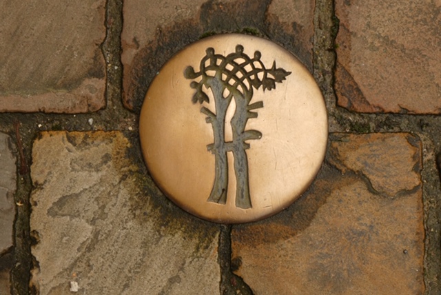 Finally, another nifty medallion in the street, similar to the ermine in Concarneau. This woodsy symbol was in the tapestry somewhere, and it’s now quietly in the street where it can be appreciated even on a rainy day with no audioguide: