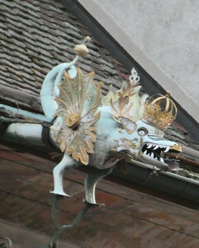 Fountains are always a fun source of faces. This one has a lion with a pipe in its mouth, ending with sort of a fishy face. Nice eyes.
