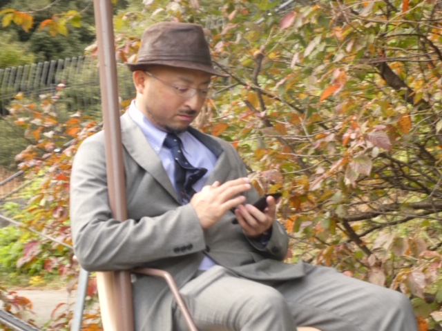 Back to the castle. Like many other defensive fortifications, it’s way up on the top of a hill. To get there, visitors can ride up in a gondola, or in a single-seat chair lift. As I was riding up, I saw Japanese gentlemen on their way down, apparently after taking a break from work. But unlike me, they were not idly enjoying the scenery. Here’s one: