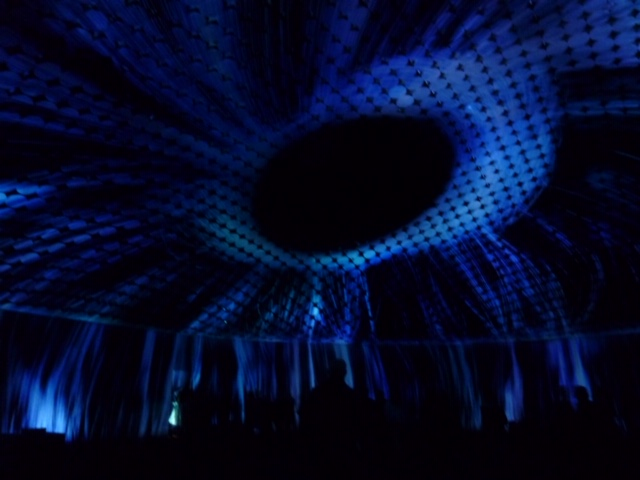 which I thought was pretty unusual. The space is smaller than I expected, but the current installations were interesting. One was a series of very dark rooms with sound and projections on the floors and walls. I can’t explain or illustrate well, but this shot of the “light vortex” might give you an idea: