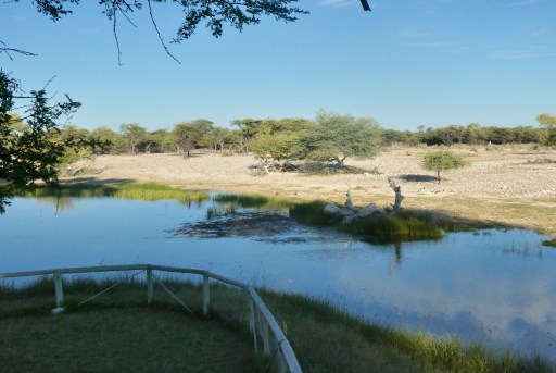 We left the national park, nine minutes later than our 48-hour permit officially allowed. The large and luxurious Onguma property (and wildlife preserve, I think) is right next to Etosha, and much swankier than the NWR Okaukuejo complex. The bar and restaurant overlook the waterhole, where jackals, springbok, and other small antelopes were seen during dinner.