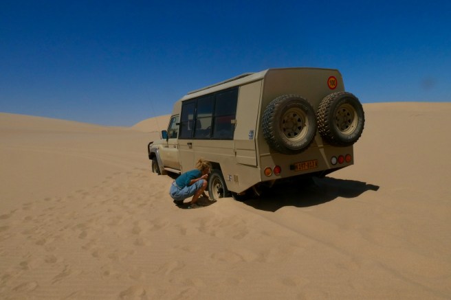 Along the way, we got stuck in the sand and had to go around instead of over the dune.